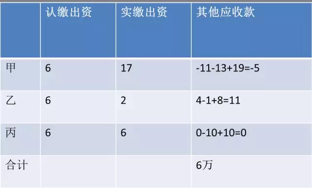 甲乙丙3人2013年协议各出资6万开立有限公司,三人均股。实际出资现金甲17万,乙2万,丙6万。