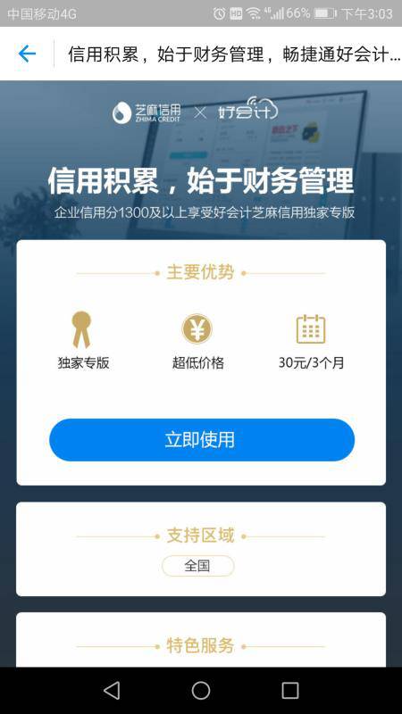 “芝麻信用的用户在企业支付宝APP中进入信用生活就可以看到好会计的图标,点击就可以使用好会计产品,非常的方便!”芝麻企业信用运营负责人心幽说,“针对本次合作,畅捷通好会计方面推出了一项非常优惠的福利活动,只要企业信用分在1300分以上,就能享用好会计芝麻信用独家专版!”