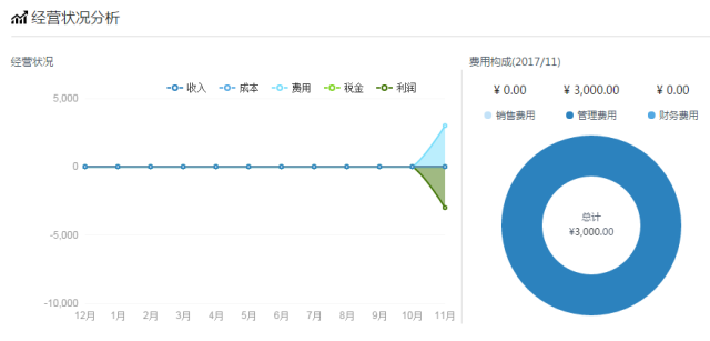 筹建期时,也可以利用《好会计》的经营状况分析图标,直观的按月向老板展现当前的“成本、费用、税金、利润”状况。