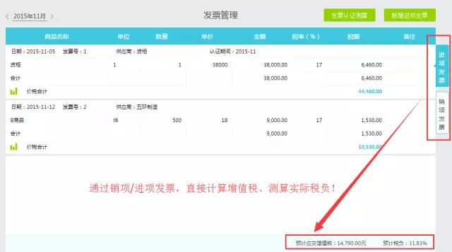 这时,如果你是好会计用户,可以利用发票管理模块,管理开出的销项税发票、收到的进项税发票。并且不用查看会计科目余额表,即可方便的自动算出实际承担的增值税额,实际税负,如图。