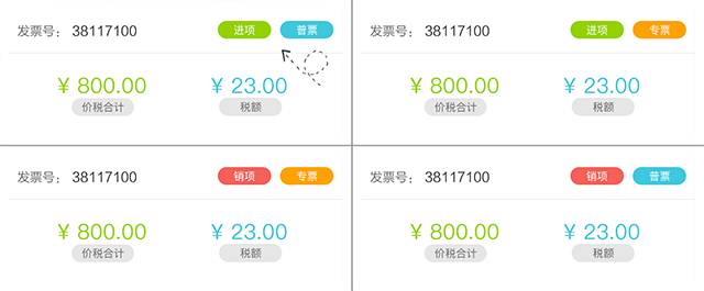 自动按“进项普票、进项专票、销项普票、销项专票”分类录入(如下图所示分类)
