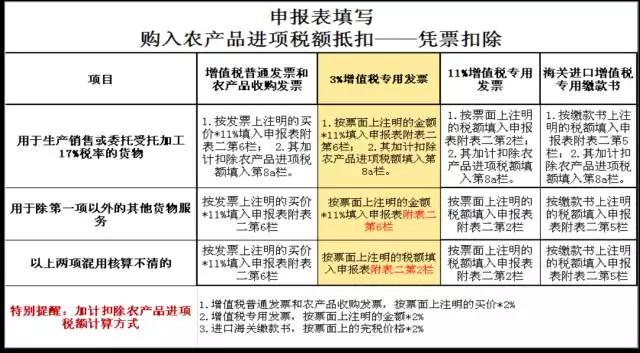 ◇本表第1-3栏和第25-28栏:涉及的增值税专用发票均不包含从小规模纳税人处购进农产品时取得的专用发票,但购进农产品未分别核算用于生产销售17%税率货物和其他货物服务的农产品进项税额情况除外。