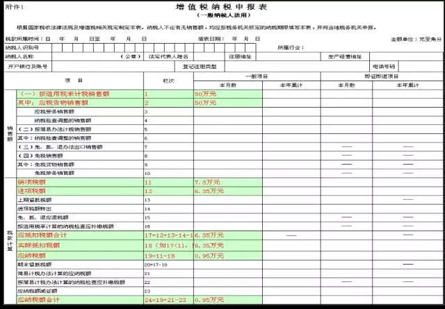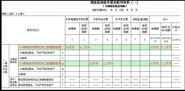 附表一:原“11%税率”栏次调整为两栏,分别为“11%税率的货物及加工修理修配劳务”和“11%税率的服务、不动产和无形资产”。