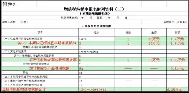 附表二:第8栏“其他”栏次调整为两栏,分别为“加计扣除农产品进项税额”和“其他”