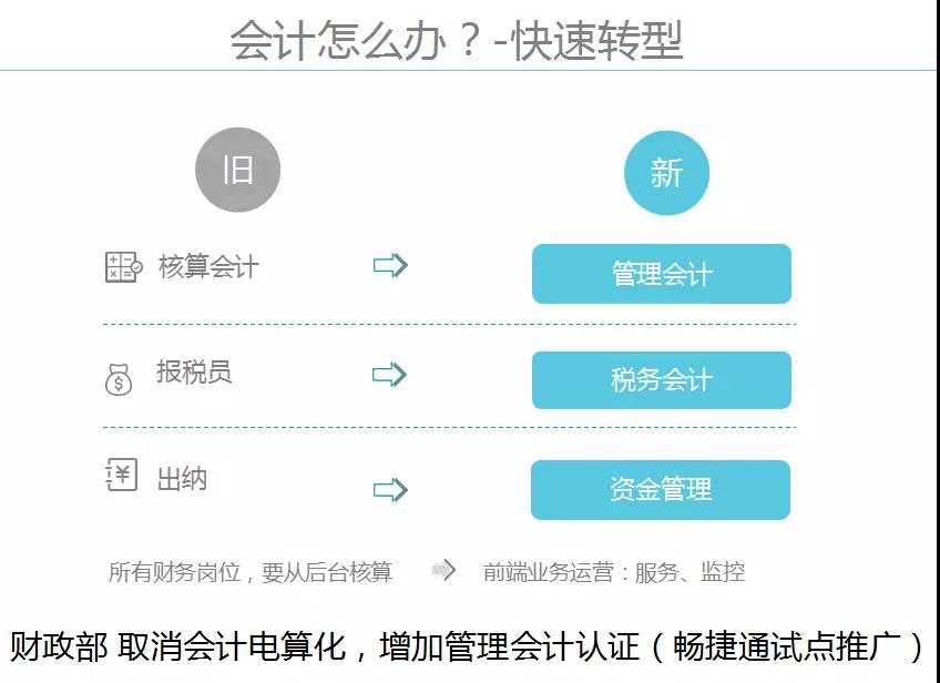 对财务会计从业人员来讲,由从事简单、重复的事务性工作向从承担起战略咨询、管理等专业化角色转变,也将成为必然。然而对于广大小微企业以及会计从业人员而言,在接踵而至的一系列政策、环境变化冲击下,财务模式如何创新?会计人如何转型,转向何方?