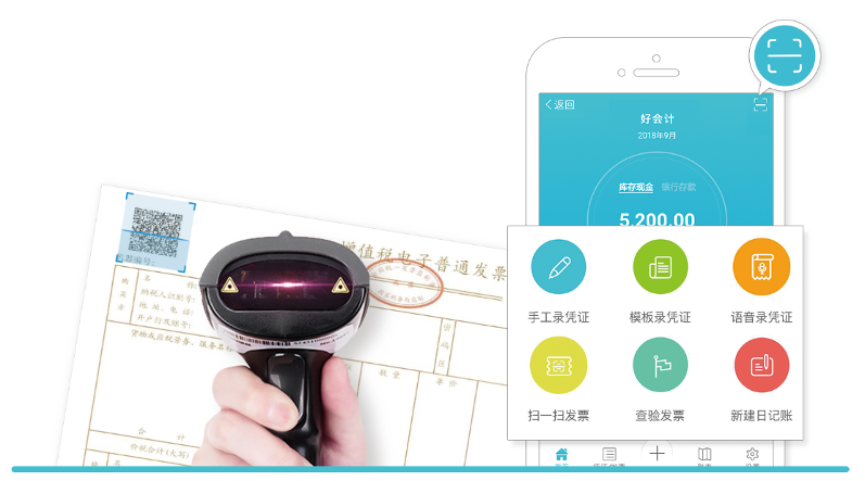 好会计手机端可以通过扫一扫发票二维码,直接获取发票信息,进行快速查验发票,并且自动生成会计凭证。
