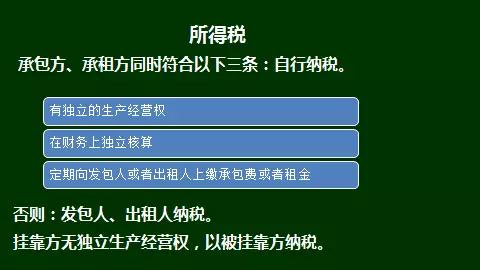 第四十九条 承包人或者承租人有独立的生产经营权,在财务上独立核算,并定期向发包人或者出租人上缴承包费或者租金的,承包人或者承租人应当就其生产、经营收入和所得纳税,并接受税务管理;但是,法律、行政法规另有规定的除外。