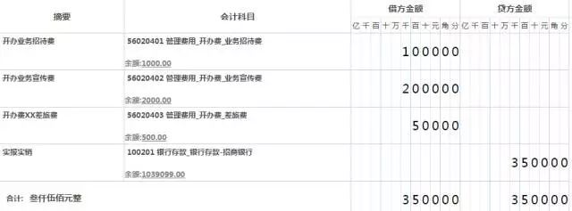 此处,为何要将三种费用支出分开列示呢?就是因为税法上对于开办费中的业务招待费是有税前扣除限额的,所以这样明细划分,对于企业所得税年中汇算清缴十分有好处,届时可以轻松统计出开办费中的业务招待费1000元,需要纳税调增40%即400元。