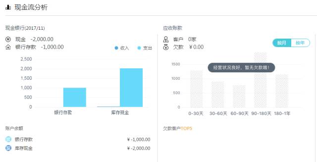 在公司步入正常经营期后,更可以即时展现现金流量情况与税务风险分析情况: