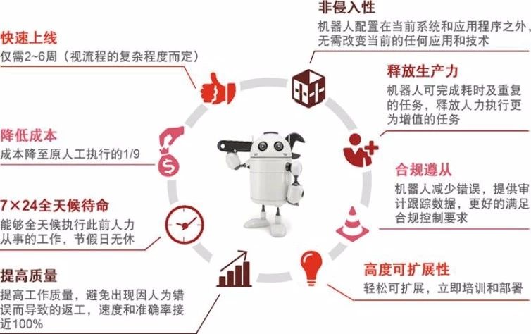 现如今,四大的智能机器人中心已经与多家企事业单位建立合作,提供财务自动化流程解决方案。机器人为财务部门的工作带来效率的提升,帮助财务人员完成大量重复规则化的工作。