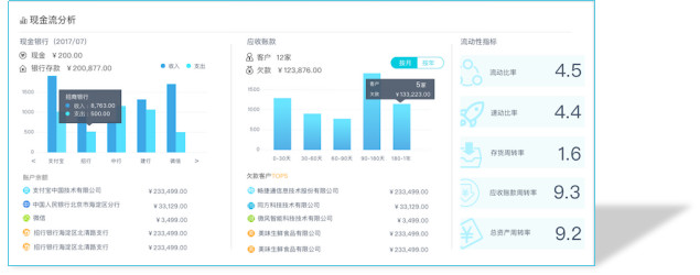 实时监测现金银行资金分布及收支状况、应收的账龄情况以及一些基本流动性指标