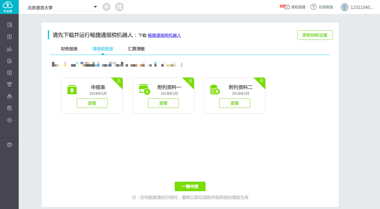 👍 登录北京国税客户端,财报、增值税申报表已自动填报;