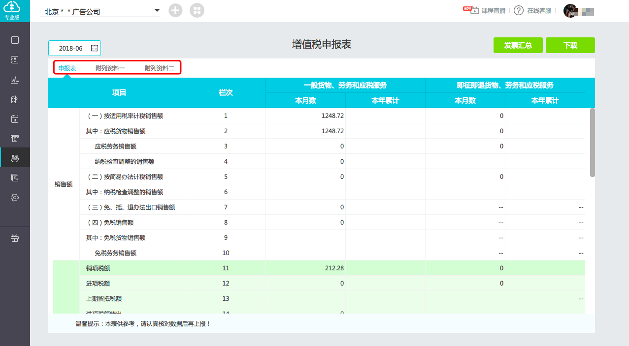 😃 一键秒算增值税纳税申报表和财务申报表;