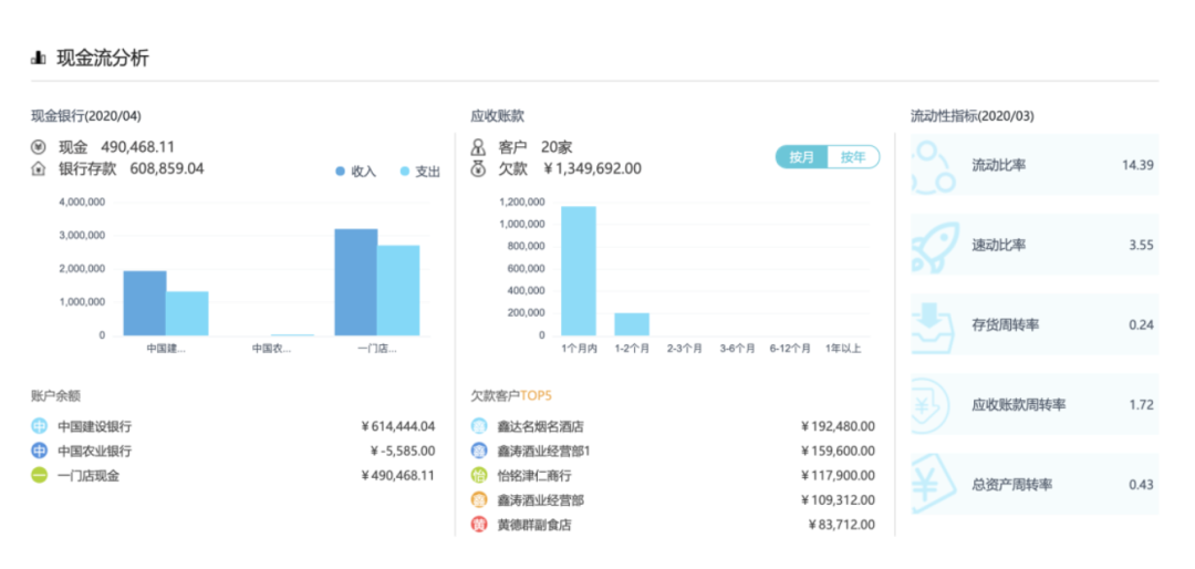财务们别慌,畅捷通好会计能直观呈现财务报表:经营状况、费用构成、盈利指标等,提供清晰的企业费用构成、费用趋势变化、费用收入占比分析,让企业费用节省的每一分钱,都可以化为利润。
