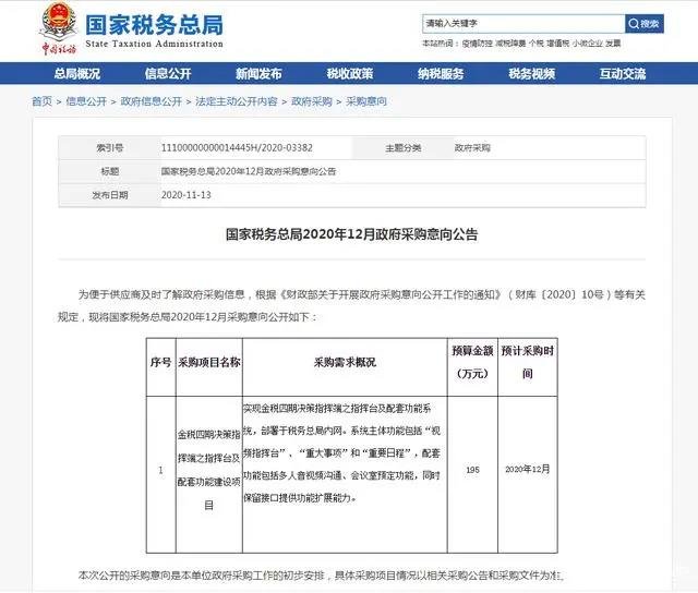 前不久,国家税务总局发布2020年12月政府采购意向公告,正式官宣金税四期的到来!