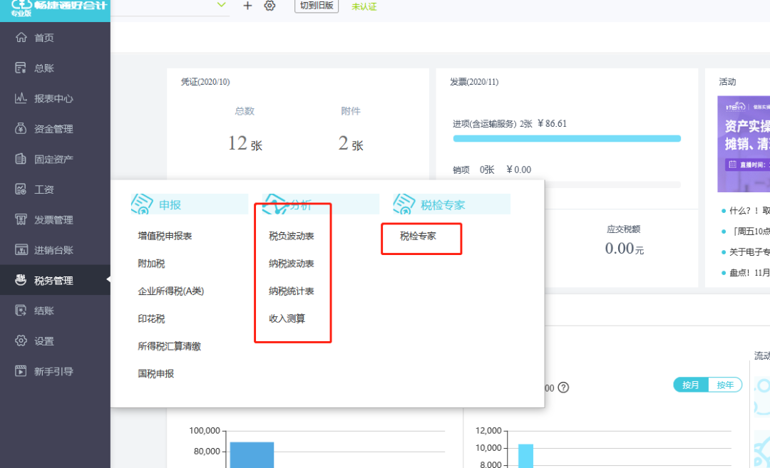 关于发票稽核,畅捷通好会计可以自动稽核对比,比如销项发票与进项发票的商品编码匹配、预警负库存......无论政策、制度、系统怎么变化,企业和会计都不用过度操心,畅捷通好会计提供税负波动表功能,用图形展现各个季度预缴税负走势,实现企业的合规经营。