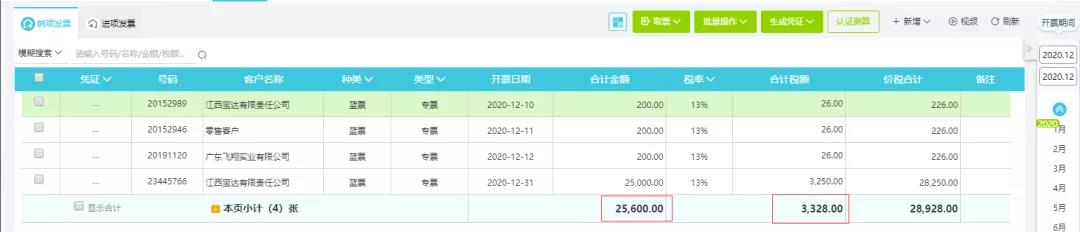 当期销项税额及当期销项收入来自于我们本期实现的销售收入和税额,直接在发票管理模块中进行取数;