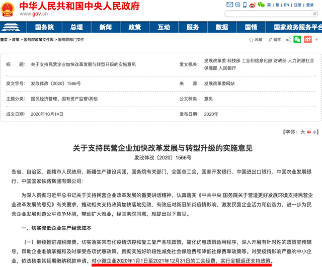 近日,国家发展改革委、科技部、工业和信息化部、财政部 、人力资源社会保障部、人民银行等部委联合发布《关于支持民营企业加快改革发展与转型升级的实施意见》并明确规定:“对小微企业2020年1月1日至2021年12月31日的工会经费,实行全额返还支持政策。”