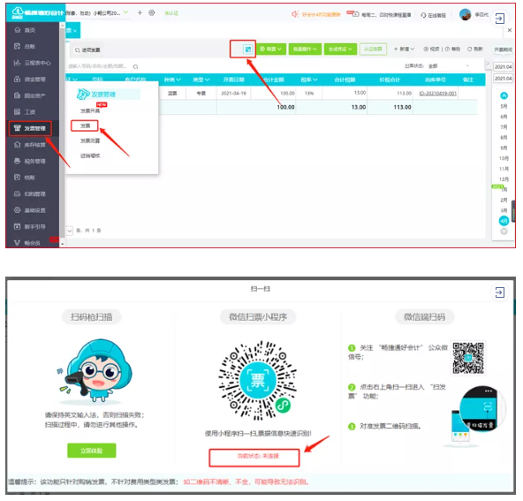 手机上扫描单据生成凭证,扫描增值税专用发票进行发票识别和验证并生成凭证,提升记账效率。现在验证一张发票只要几秒钟,票面信息自动识别,无需手工录入。