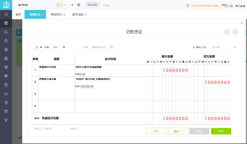 1)点击新增凭证-摘要写清调整原因-录入对应分录-点击保存