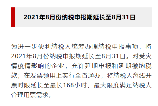 河南省延长8月征收期到8月31日。