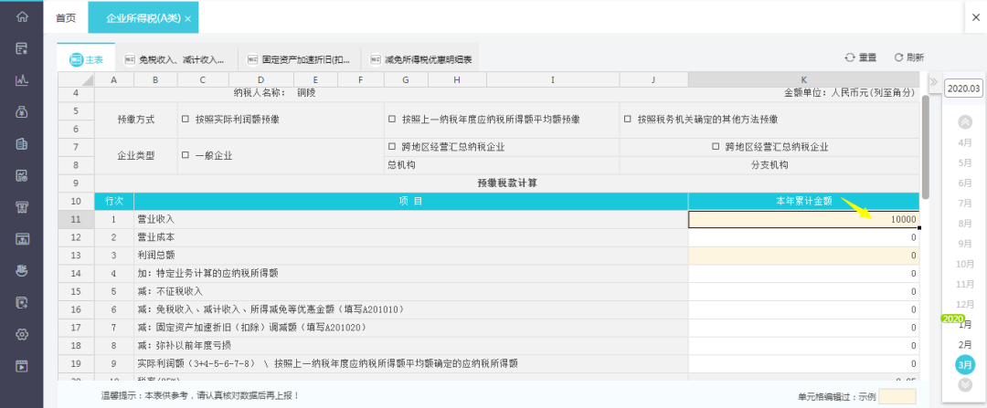 小规模纳税人填报如下: