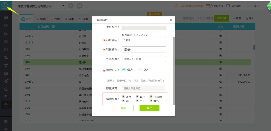 好会计精易版仅支持单辅助核算(只能选择一个辅助核算项目在其后打钩)