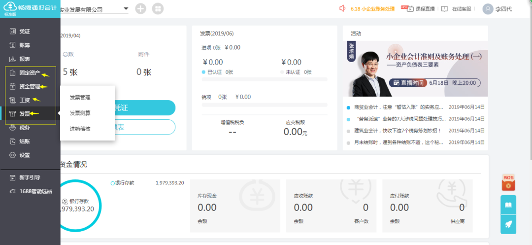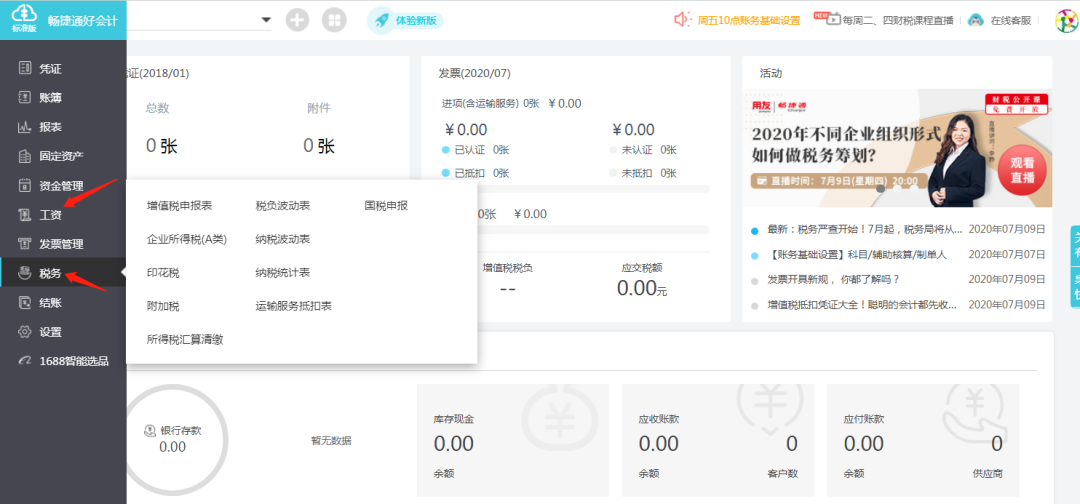 普及版相比于精易版、标准版少了:固定资产、发票、资金管理、工资4个单独的大版块。