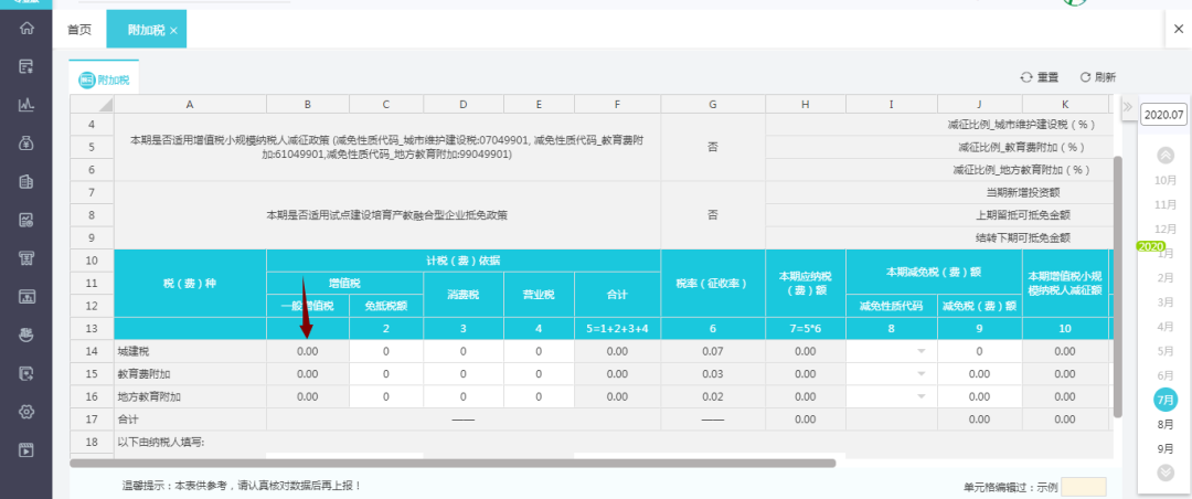 增值税及其附加税都0申报,仅需填写进项税额,如下图: